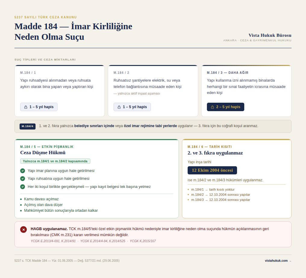 Suçlar" alt başlığı altında yer alan 184. madde, imar kirliliğine neden